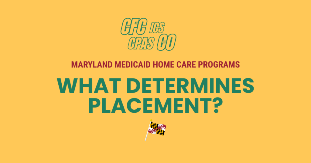 Guiding families and friends through Maryland's Medicaid HCBS Waiver programs, mainly Community First Choice (CFC) but also CPAS, CO, and ICS, which help to support and compensate eligible family and friend caregivers for the care they give to a relative, neighbor, or friend.